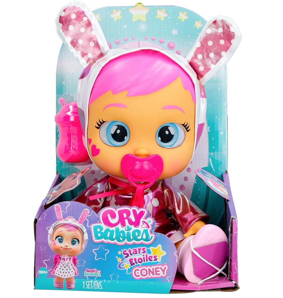 As novas Cry Babies chegaram diretamente do espaço e estão mais encantadoras do que nunca! Com olhos que brilham como estrelas e lágrimas de verdade, a diversão é garantida. Dê a elas uma chupeta ou uma mamadeira para acalmá-las e evitar que chorem. Ao retirar a chupeta, elas derramam lágrimas de verdade, emitem som de choro e seus olhos brilham com estrelas tão radiantes quanto o céu noturno! Utiliza pilhas (já inclusas).