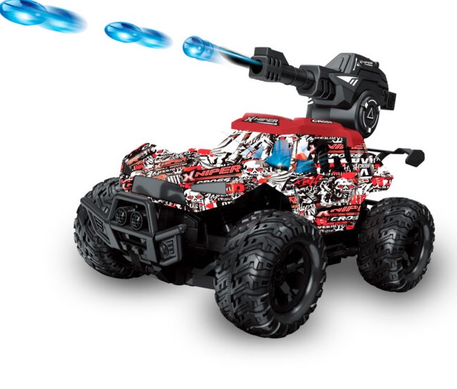 Conteúdo da embalagem: 1 carro com lançador, 1 controle remoto, 500 bolinhas de gel, 1 Bateria 3,7V Recarregável, 1 cabo USB para recarga
