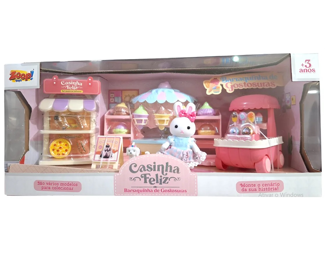 Conteúdo da embalagem: 1 playset barraquinha de gostosuras, 1 coelhinha, 1 pet, acessórios