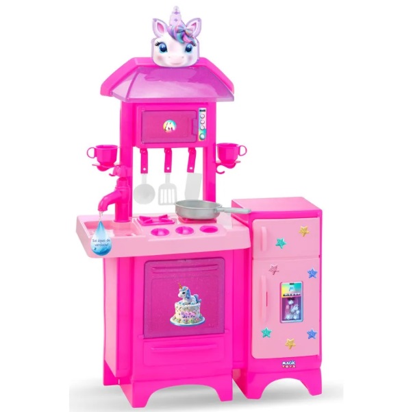 A Cozinha Completa Unicórnio da Magic Toys é pura fofura e diversão! Perfeita para soltar a imaginação, ela vem geladeira com portinha que abre, fogão, forninho que abre, pia que sai água, diversos acessórios, utensílios de cozinha e detalhes encantadores inspirados no universo mágico que transformam qualquer brincadeira em um verdadeiro momento de chef!