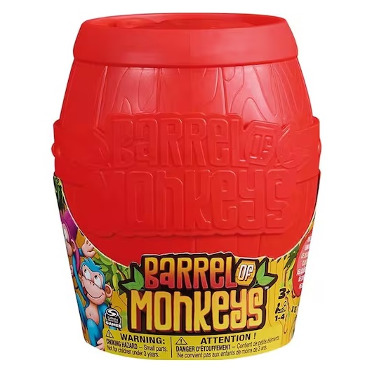 Divertido e cheio de nostalgia, o clássico Barrel of Monkeys (Barril de Macacos) está de volta com visual renovado: novas cores e expressões dos macacos, mantendo toda a essência do jogo. O objetivo é formar a maior corrente de macacos possível sem deixar nenhum cair. Quem juntar mais em uma única jogada, vence!