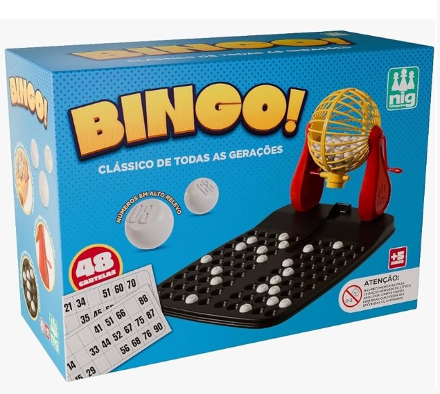 “BINGO!” um jogo conhecido em todo o mundo, ideal para reunir crianças, adultos, amigos e toda família. A vibração do vencedor ao declarar “BINGO!” é impossível de ser evitada. Jogo em plástico de alta resistência, com 48 cartelas de números e bolinhas numeradas em alto relevo de 01 a 90. O globo ainda conta com dispositivo de ejeção automática para as bolinhas. Super completo e divertido!