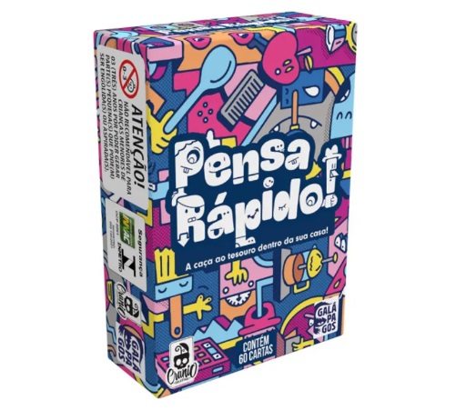 "Pensa Rápido!" é uma aventura emocionante: uma caça ao tesouro dentro de sua casa ou em qualquer lugar! Os participantes se lançam em busca, todos ao mesmo tempo, tentando encontrar objetos que se encaixem nos critérios de suas cartas. As cartas apresentam 1 ou 2 requisitos, seja um ícone, uma letra ou uma cor. Será possível encontrar um objeto verde tão pesado quanto um elefante dentro de casa? Quando um jogador completa o seu baralho, o jogo termina, e os pontos são marcados pelos jogadores. Entretanto, para pontuar com suas cartas, será necessário persuadir os oponentes de que os objetos encontrados atendem aos critérios indicados nas cartas! Desafie suas habilidades de persuasão e vença esta empolgante caçada ao tesouro!