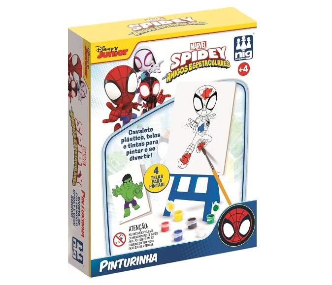 O Kit Pinturinha Spidey é perfeito para soltar a imaginação das crianças com muita diversão. Acompanha 4 telas para pintura com desenhos do personagem e sua turma, 1 cavalete plástico, tintas guache e pincel — tudo pronto para criar e se divertir com o herói favorito. Ideal para estimular a criatividade e o desenvolvimento artístico.