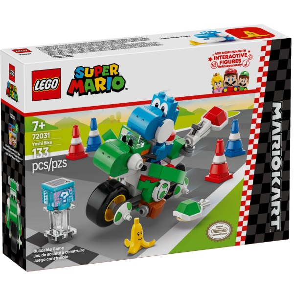 Acelere para uma ação emocionante de dirigir e derrapar com este conjunto de brinquedo de aventura colecionável LEGO® Super Mario! Ajude o Light-Blue Yoshi a dirigir a moto entre 4 cones de trânsito, lançar conchas da moto e desviar da Banana.