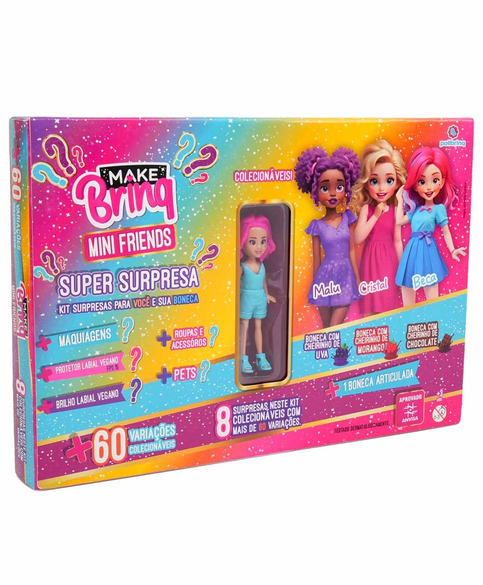 Prepare-se para a diversão com a Mini Friends – Super Surpresa! Este kit contém uma boneuinha articulada com cheirinho de frutas e 8 surpresas incríveis, com mais de 60 variações de itens colecionáveis. Cada pacote revela surpresas: roupinhas, acessórios, 1 pet e um 1 item de maquiagem para encantar as crianças. Ideal para quem adora mistério e emoção, cada Mini Friend vem com um estilo único e fofo. Pronta para descobrir o que vem dentro dessa super surpresa? São três modelos sortidos enviados de acordo com a disponibilidade em estoque.