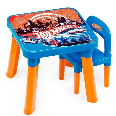 Linda e super divertida, a mesa da Hot Wheels vai encantar a molecada.. Além de brincar, os pequenos podem aproveitar o espaço para fazer refeições, estudar e criar lindas pinturas com muito conforto. A tampa de mesa se abre virando um porta objetos. O conjunto ainda acompanha uma cartela de adesivos para decorar como quiser. Confeccionada em polipropileno, ela é super leve. Dimensões aproximadas do produto (cm): 56 x 5 x 50 (alt x larg x comp)