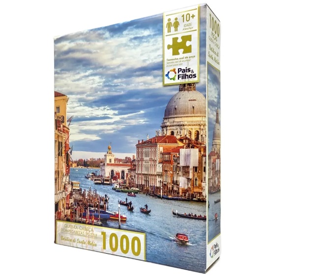 Sinta o encanto de Veneza em cada detalhe! Este quebra-cabeça de 1000 peças da Pais e Filhos retrata a majestosa Basilica di Santa Maria, um ícone da arquitetura italiana. A imagem captura a beleza dos canais, a arquitetura clássica e o céu dramático da cidade das águas. Peças em papel cartão resistente com encaixe suave, garantindo a durabilidade do puzzle. Depois de montada, a imagem mede aproximadamente 54X74cm.